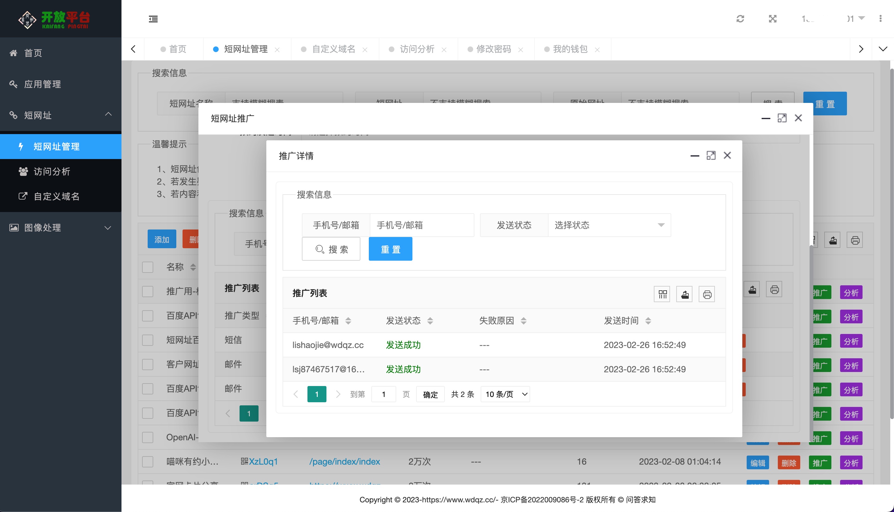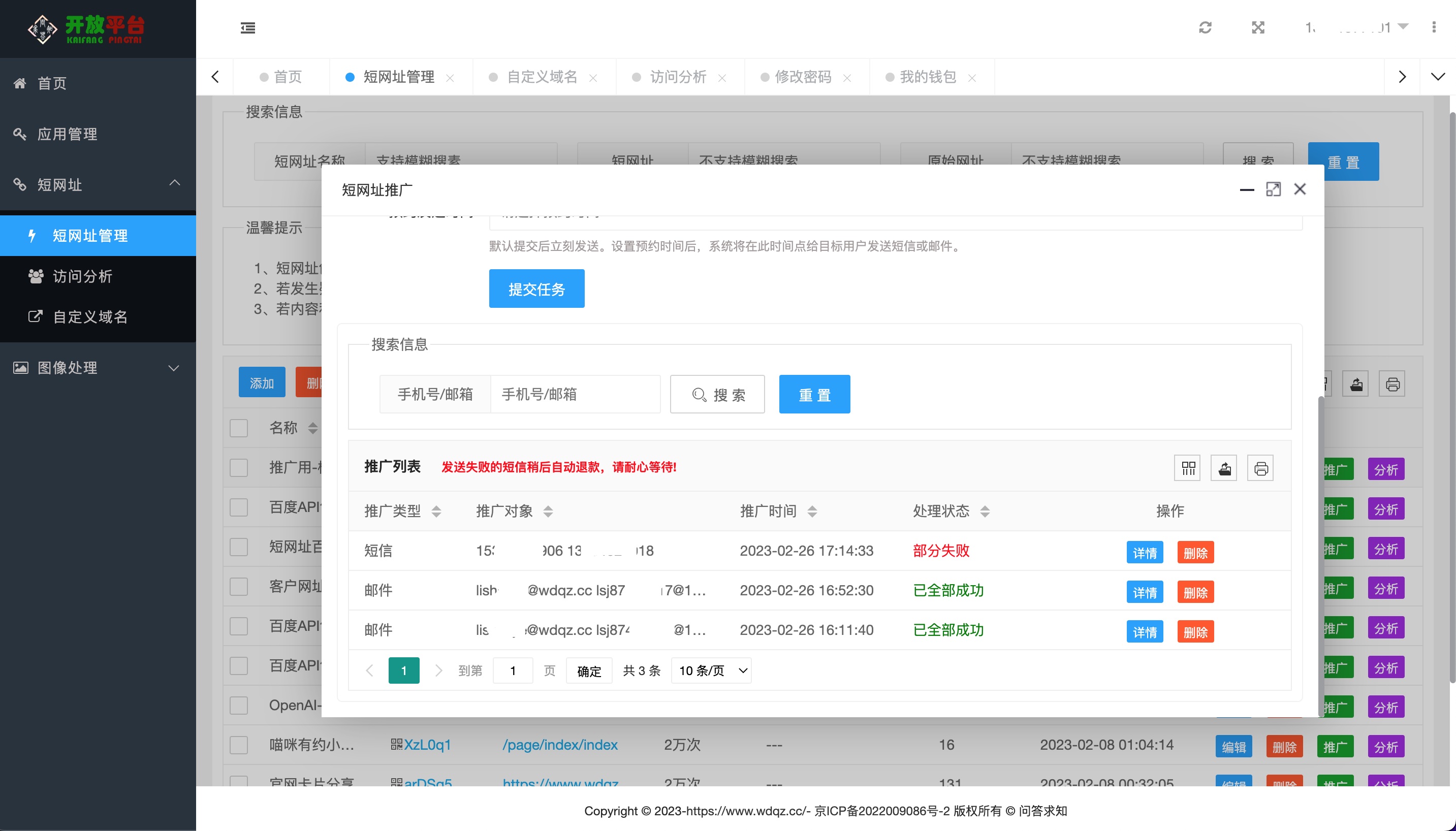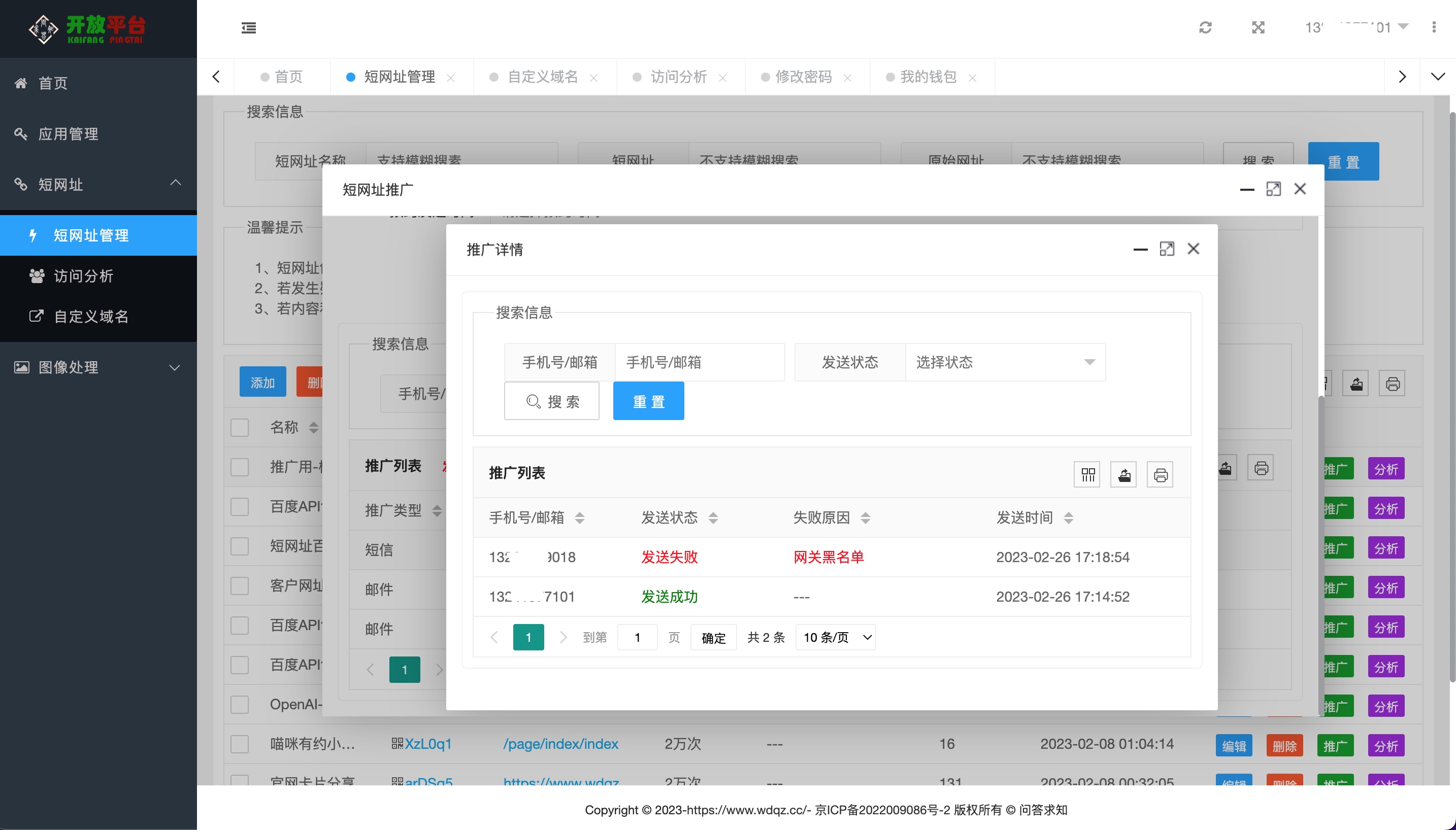 (二)短网址功能,平台支持在线短网址创建、编辑、查询。