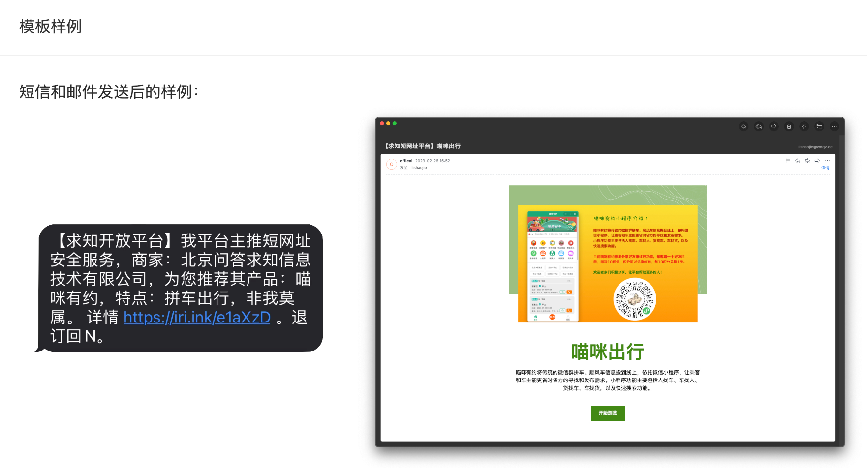 邮件支持自定义:【产品名称】【产品介绍】【产品图片】,携带【短网址】发送。