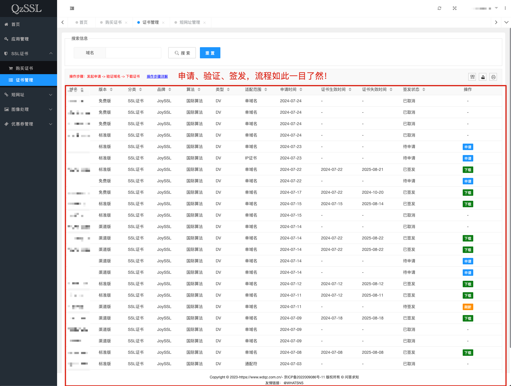 2024年和国内权威证书服务商 JoySSL 达成顶级合作! 现已完成 QzSSL 证书签发平台的搭建,欢迎大家使用和推荐给身边人!