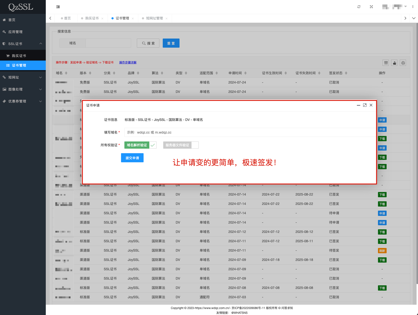 2024年7月,QzSSL.com 正式上线,为用户提供专业的 SSL 证书服务!